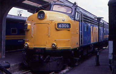 VIA F9B 6623, nee Canadian National 6623, built by General Motors Diesel in 1958. It was retired between 1986 and 1990.