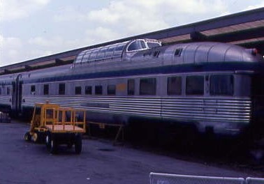 Via Rail sleeper-buffet-lounge-dome-observation car 8715 "Tremblant Park", ex. Canadian Pacific Rail 15515, nee Canadian Pacific 15415, built by Budd Company and AMF Technotransport in 1954, brought up the rear of the Canadian.