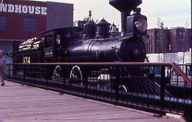 The locomotive was removed from Kitsilano and placed in a warehouse on Granville Island, where teams of dedicated volunteers worked on her for two years. In 1985, the engine was transported to North Vancouver's Versatile Shipyards for final restoration. Additional funds to accomplish this were partially raised through the Heritage Brick Program sponsored by Imperial Oil Limited. On February 13, 1986, 374 was transported to the Expo 86 Roundhouse Site, there, restored to its former glory, it was a fitting tribute to Vancouver's historic transition from "Milltown to Metropolis".