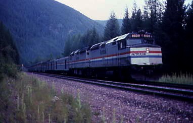 With the afternoon sun sinking, we started to travel in the shadows as we turned the river bend towards Pasco, at which point the river began to narrow as the height of the bluffs decreased. Across the river I saw a Union Pacific freight on its way to Hinkle, Oregon and we continued north, but the darkening skies took over and we arrived at Pasco under the cover of darkness. From here to Spokane, the train travelled east over the former Northern Pacific tracks and Jeff and I both decided to get some sleep, so for the next three hours, we were out. Ten minutes before our arrival at Spokane, our coach attendant awoke my parents and Jeff so they would be ready to detrain. I woke up to say goodbye to them and wished them all a safe trip, my parents in the camper and Jeff on the Empire Builder back to Portland, the Coast Starlight and a San Diegan home. We arrived on time, they detrained and I went back to sleep through the joining of the Empire Builder sections, across Idaho and well into Montana.