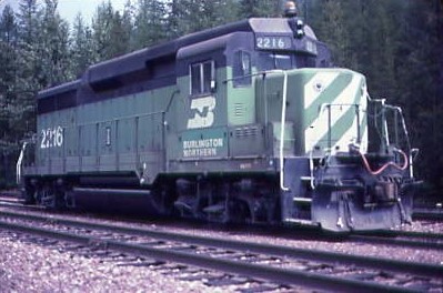 Burlington Northern GP30 2216, nee Great Northern 3016, built by Electro-Motive Division in 1963. It later became Burlington Northern GP39M 2815, then BNSF 2815 and finally Larry's Truck and Electric 2815.