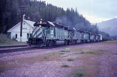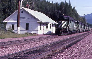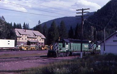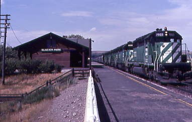 Burlington Northern 7922 West and the East Glacier (Glacier Park) station.