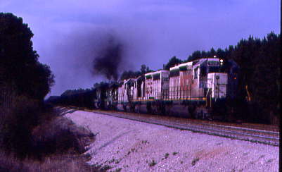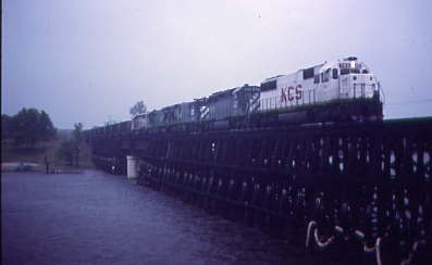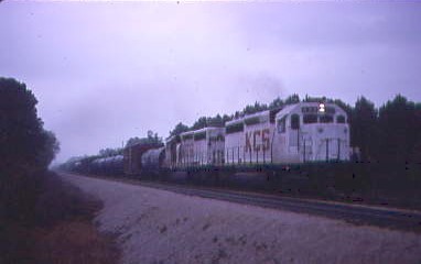 4/21/1987 The KCS gave their line-up over the radio at 7:00 AM for their First, Second, Third and Fourth Subdivisions, at 7:30 for the Fifth, Sixth and Seventh Subdivisions. Since we were about to follow the Fifth Subdivision, we now knew what trains would be out and about on the line.