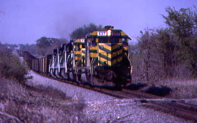 On the way back to town, we caught Missouri Pacific 3520 West at Sulphur Springs, Texas.
