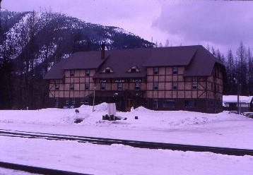 The Izaak Walton Inn Stay 3/19/1989The Izaak Walton Inn symbolizes the difficulty of keeping the United States' northernmost transcontinental railroad open during Rocky Mountain winters. Each winter, sixty Great Northern Railway workers were stationed here to clear the rails of snow between Essex and East Glacier. Originally, their days of fighting snow and frequent avalanches ended with a return to abandoned railcars and wall tents, for Essex had only 150 permanent residents and nowhere for the workers to board. After numerous petitions, the Great Northern built this twenty-nine-bedroom structure in 1939, on its standard pattern for a division hotel. Railroad policy called for only a section house at a location other than division point, but the difficult winter maintenance of Marias Pass required changing the rule. The railroad also realized that the hostelry could serve summertime tourists, when fewer railhands needed lodging. The hotel was named after Sir Izaak Walton, a 16th century English author and sportsman, who has been the patron saint of fishermen for 400 years. Born on August 9, 1593 in Stafford, England, he authored the famous book about fly-fishing, "The Compleat Angler". A local resident who lived in the area in the early days is presumed to have named the hotel after Sir Izaak. This Craftsman-style inn has been in continuous use since its construction and, to this day, serves both railroad workers and tourists.
