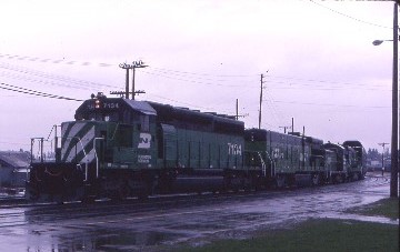 3/23/1989I awoke as the Baby Builder was cruising along the Columbia River just south of Pasco. It was a cloudy morning and once in the Columbia River Gorge, the rain started the rest of the way to Vancouver, where I detrained on time. From the cover of the station's overhang, I watched the trains roll by on a very wet morning until my Coast Starlight arrived later that afternoon.
