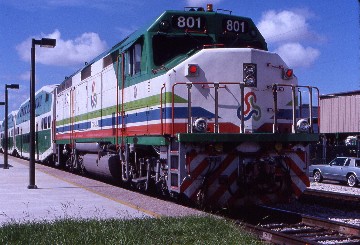 Tri-Rail F40PHL-2 801, a Morrison-Knudsen re-build from Conrail 3230 with parts from Burlington Northern 6630 and 6637, nee Penn Central GP40 230, built by Electro-Motive Division in 1968. I learned from the conductor that this was a brand new service from West Palm Beach to here and he gave me a tour of the equipment during its layover, then handed me a schedule and suggested I ride it if I returned some day. The rest of my stay in Miami was in my hotel room, where I brought myself up-to-date on the news and the weather for the cities in which I was going to be. I then ordered a Prime Rib dinner from room service, the first time I had done that before watching an evening of television and airplane landings before falling asleep.
