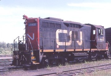 Canadian National SW1200 7102, nee Canadian National 1230, built by General Motors Diesel in 1985. I decided to go into the railway's offices in search of an employee timetable and the girl at the reception desk sent me upstairs to the district superintendent and I explained what I was looking for and he produced a set of timetables covering Toronto to Edmonton. Once more, the friendliness of the Canadian railroader showed why I love these people and this country. My time in Hornepayne was fun and very memorable, then I returned train side to work on my suntan and when John returned, we went into our room and had a drink to toast our success at Hornepayne and our Canadian trip.
