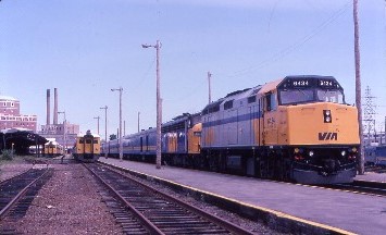 Montreal 7/4/1991My first order of business was to get some breakfast, so I went to McDonald's hoping to have hot cakes and sausage. The menu, naturally, was in French and while I knew "milk" was "lait", did not know what hotcakes or sausage was. A girl behind the counter motioned me over and she whispered very softly that she could get fired for speaking English but asked me what I wanted. I whispered back my request just as the manager came towards us, so I smiled and two minutes later, out came a tray with my breakfast on it. I mouthed a thank you to her and she smiled broadly then returned to her duties. Following breakfast, I spent some time looking around a book store before buying the current issues of Railfan and Railroad and Hockey News. I found the gate for the 12:15 PM departure of the Meridian for Toronto and waited for boarding time.