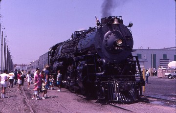 After about thirty minutes, here came 3751 and the all-private car train travelling east through Fullerton. I said goodbye to my father, who could not believe I was going to be riding behind that engine tomorrow then walked over to the station to wait for the Desert Wind and boarded. The conductor could not believe I was just going to Barstow instead of Ogden, until I told him that I was riding behind 3751 tomorrow to Bakersfield and he wished he could be going with me. We proceeded east through Santa Ana Canyon until Colton, where I went on 3751 alert and took the "short way" to reach San Bernardino, where, holding the mainline in "A" yard was 3751 and its train, waiting patiently for us to do our station work.