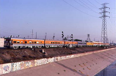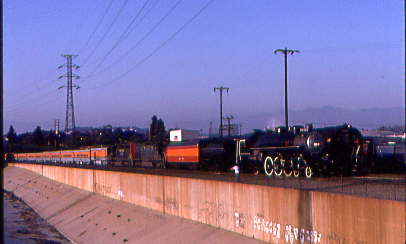 From Flimsies, I learned that Southern Pacific 4-6-2 2472 was pulling a special passenger train, whose consist was mainly of Rio Grande Ski Train equipment, as well as dome cars "Silver Lariat" and "Columbia River", on a two-day trip from San Jose to San Luis Obispo, then would travel to Los Angeles the next day. This movement was to put the steam engine in position to lead the Earth Train from Los Angeles north up the Coast line a few days later. The Earth Train was a project of the Gateway Pacific Foundation located in California and its slogans were "Youth to Youth: A Ten-Year Global Campaign", "Youth Creating Tomorrow Today" and "Community Service for the Environment". Coca-Cola and Hyatt Hotels and Resorts were the corporate sponsors. 200 young people from all over the world were on board, learning about the environment so they could help others learn how to protect it.
