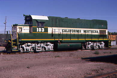 On my way to Motel 6 in Woodland, I stopped by the California Northern yard and found GP15-1 103, nee Chicago and North Western 4414, built by Electro-Motive Division in 1976.