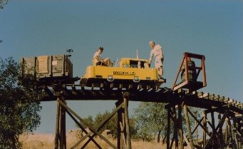 With the help of his good friend, Casey Derengowski, Roy started laying track and restoring the old locomotive. On February 11, 1992 the old locomotive ran for the first time in many years. Then in June 1993, the trestle at High Pass was completed. They also built a depot, freight shed, engine house, blacksmith shop, section house and three other trestles. The last spike went in on September 22, 2000. Five years later the "Two Foot Gauge Owners Association" indicated that they believed it is the longest operating two foot gauge trestle in the United States.