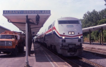We entered the State Line Tunnel and exited into the state of New York with our next stop of Albany-Rensselaer and the schedule called for us to be here an hour and twenty minutes while the New York section arrived and one long train is made out of the two. I took this opportunity to write Amtrak Customer Service in Philadelphia about the whole taxi cab situation, the agent gave me an envelope and I mailed it off and put the whole event behind me (note: I received a cheque in the amount of $120.00 for the cab fare on December 16, 1996). I went for a good walk then when the New York section finally arrived, it gave me an opportunity to inspect a Viewliner Sleeper. With no sleeping car reservation tonight, I returned to my coach seat for our on-time departure and unpacked my pillow and blanket from my suitcase, curled up and fell asleep in the aisle seat.