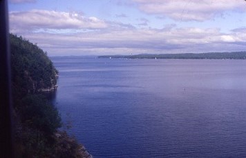 Now for what I have been waiting for, the one hundred miles of paralleling the west shore of Lake Champlain, which I first saw in a picture with the D&H passenger train The Laurentian on a ledge high above the lake. From that point on, I had dreamt of riding over these tracks and today my dream was coming true. The tracks at some points are right along the water's edge, reminding me of British Columbia Railway, and at other times, high above, or even away from, the lake. However, the views of the Lake were omnipresent.