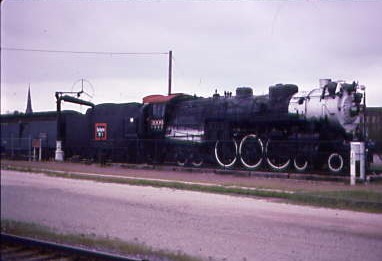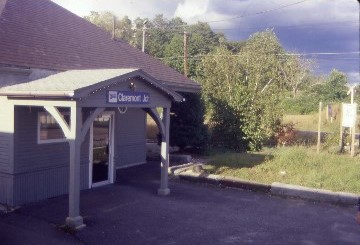 Vermonter 55 8/14/1996Our on-time departure would allow me to travel by train in Vermont and a slight part of New Hampshire for the first time and I relaxed and just took in the countryside after the crazy start to the day then I napped to recharge my batteries so was out between Burlington and Montpelier-Barre and forty-five minute later, felt like my old self. We went into the siding at Randolph to let one of the New England Railroad's freight trains pass then we stopped at White River Junction where Boston and Maine 4-4-0 494 was on display.