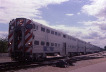 Metra 7 and 14 8/15/1996I walked to Track 28, boarded the train and wrote postcards until departure. This train would provide my first look at what is on the south side of Chicago from a commuter train and the route was once that of the Wabash Cannonball, but today sees only commuter trains and Norfolk Southern locals. We passed through BNSF/Metra yard and Norfolk Southern's yards, then the junctions with other Metra lines serving the Chicago area before we proceeded out to Orland Park. I was amazed how, unlike the north side of Chicago, where you pass buildings for miles, how quickly the south side ends. We passed through some very nice communities such as Oak Lawn, Worth and Palos Heights then crossed the Calumet Sag Channel and I was surprised at the large amount of undeveloped land there was. There were three stops for Orland Park and I detrained at the last one, 179th Street, which had a small parking lot and overnight holding tracks for commuter trains.