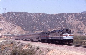 8/21/1996 The next morning I awoke at Garnet, California outside of Palm Springs as the Sunset climbed Beaumont Hill. This morning there was no Southern Pacific freight trains on the line, something that was very uncommon for a very busy Sunset Route. We had a fast journey down San Timiteo Canyon, crossed the Santa Fe at Colton Crossing and managed to get through West Colton Yard without even slowing. We then stopped at both Ontario and Pomona, had a five minute delay at Industry due to a Southern Pacific switching move, rode down the middle of the San Bernardino Freeway during rush hour and arrived at Los Angeles Union Station one hour and forty-five minutes late.
