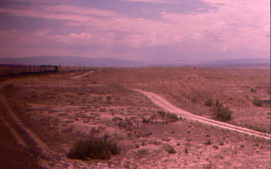 8/20/1996 Sunshine came blazing in through my window awakening me to West Texas about sixty miles west of San Antonio. I went to the lounge car for a light breakfast and found my favourite seat for today's twenty-six hour day ride since we would cross into Mountain Time at Alpine, Texas and into Pacific Time at the Arizona border. I spent the next two hours with the truck driver who was telling many jokes, some of which were quite funny. There was more conversation taking place than usual because there was nothing to see out of the window unless you are looking for something out of the norm, which was a sea of brush extending as far as one can see, with the odd cattle trail thrown in for a diversion. What we spotted as something different were the beautiful pinkish flowers in bloom from the last rainfall in the low spots along the tracks and the elevated hunting towers where the hunters of fowl await their targets. Other than the occasional mountain range thrown in, that was West Texas until Del Rio.