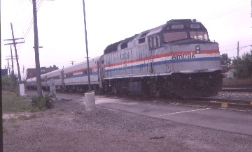 Twilight Limited 353 8/10/1996The first of the new trains of the trip and routes that I would be completing was a mixture of Amfleet and Horizon coaches with the front end of an Amcafé as the custom class section. This train was originally a New York Central one, introduced in 1926 but lost its name in 1967. Amtrak kept the route but re-named it "St. Clair" and extended the route to Pontiac; its prior terminus was Detroit.