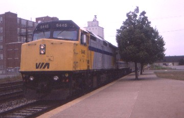 The Maple Leaf 64 8/12/1996Another day, another new train and part of a new route. Six years ago, when I was on the Lake Shore Limited, I had ridden over the tracks from Albany-Rensselaer to Buffalo during the night in a Slumbercoach, so this journey would provide a daylight view of the countryside on this Toronto-to-New York City train, the other joint Amtrak/VIA train, but with an all-Amfleet consist. My new mileage was from Toronto to Buffalo and from Albany to New York Penn Station. I arrived back at Toronto Union Station to find a long line for the boarding gate and there were a lot of Canadians going to Niagara Falls. I found a window seat on the right behind the engine to take advantage of the two main scenic highlights, namely Niagara Falls and the Hudson River Valley.
