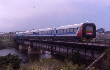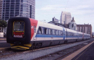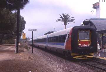 During its two weeks in San Diegan service, I rode the Flexliner at least one round trip a day and this commentary is from Train 585, on which I had ridden to San Diego and was now ready to come home to Santa Ana. Since this run was in the height of the Del Mar race season, a second regular Amfleet section of 585 followed our train to pick up the racing crowd.
