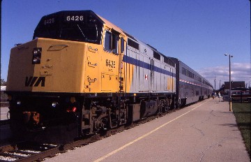 We made the first stop of the morning at Brampton, also a GO Transit station, so I knew I was still in the Toronto sphere of influence. At the city's limit, we proceeded into the Ontario countryside, passing through miles of fields and arrived in Georgetown, the last of the GO Transit stations on this line. The countryside took on an undulating aspect with the trees in their beautiful colours. Now bring on the sunshine! Coming into Guelph, we passed Canadian National 4-8-4 6217 on display before we stopped there then minutes later, went into the siding at Mosborough for VIA 84, The Huron, running almost on time. The brakeman had to throw the switch by hand so after we met 84, we reversed onto the main then picked him up. The joys of Canadian railroading.