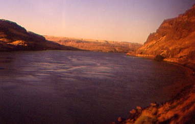 9/5/1998 Sleeping soundly, I woke up outside of Pasco, Washington, having slept through all the switching moves in Spokane where, we became the mini Builder to Portland. My plan was to just sit back and enjoy the Columbia River Gorge this morning and photograph it in ten hours. Our conductor was giving an excellent travelling commentary about the Gorge, including Arlington, Oregon being the hometown of Doc Severinsen from "The Tonight Show" and that Tom Selleck was rumoured to have bought an island in the Columbia River, which he did not. Mount Hood had the least amount of snow on it I had seen, but since it was early September, that was expected.