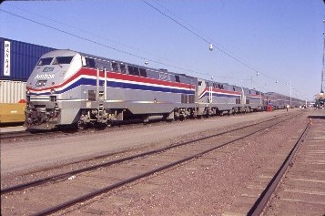 The Southwest Chief 4 9/8/1998Another unexpected familiar face was my car attendant, Michael, whom I had seen just three days ago on the Coast Starlight. We departed Los Angeles ten minutes late due to large passenger numbers, adding the mail cars and waiting at San Diego Junction for five minutes for San Diegan 585 before we finally attained the mainline. Fullerton came and went, while at San Bernardino, we lost ten minutes for an injured passenger. I went to sleep after the summit of Cajon Pass and slept so soundly that the thirty-seven minute stop for the removal of a drunken passenger at Needles did not awaken me. Being sober, I do not have to worry about that happening to me again and after all, what would I have done in Needles?