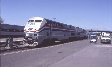 San Diegan 562 4/19/1998I was the last passenger to detrain after returning all of the seats to their upright positions then retrived a luggage cart for the "Outlaws" and we said our goodbyes and wished each other good luck in the future. I walked down to the end of the platform to wait for San Diegan 562 to arrive from Chatsworth and while I waited, both the Southwest Chief and Coast Starlight entered the station. Train 562 arrived next and after boarding, we left ten minutes late, yet arrived at Santa Ana on time. I enjoyed my sunny California morning as I walked home, ending my reverse routing Amtrak journey.