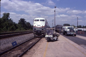 The Piedmont 73 4/15/1998As I waited patiently in the Amtrak Raleigh Station, I freshened up, bought another coffee mug and read USA Today. At 7:00 AM, I walked outside and sat on a bench waiting for my three-car train to arrive.