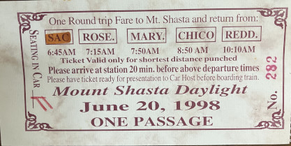 We made our way to Upton, where both Black Butte and Mount Shasta were in the same view. Minutes later, we arrived at Black Butte where our train was wyed and our number changed to Amtrak Train 881, a number used for special movements. We returned to Dunsmuir, where I detrained.