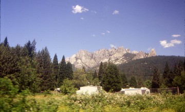 North of Chico we cross the Sacramento River on what was once a swing bridge that allowed steamboats to pass, as the river was once a navigable waterway. The bridge is the original, but the swinging machinery is gone now. Just after this bridge we come to Gerber, once a major railroad town with an engine house and servicing facilities. Today the only trackside building left is a lonely warehouse. Here also is the junction with the old 'Westside Valley' line, now the California Northern Railroad. We will then pass through Red Bluff reached in December 1871. We now begin climbing out of the valley, through the rolling hills towards Redding, passing through Cottonwood. The rails reached Redding in September 1872, but ended here for three years while politicians and financiers battled over the routing and financing of the line to connect with the Oregon & California Railroad (building south from Roseburg, Oregon).