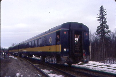 We passed Elmendorf Air Force Base, which is the largest in Alaska. Off to the right were the Chugach Mountains, the ground was covered with a blanket of snow and the high forties-degree temperatures allowed limited Dutch door riding, which is where I took pictures then explored the train, ending up in the rear open vestibule before returning to the warmth of the inside.