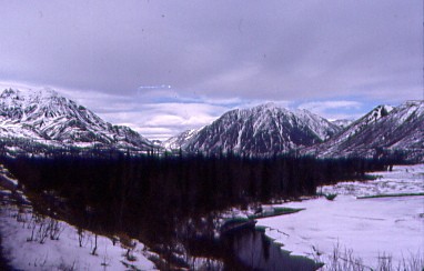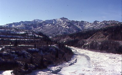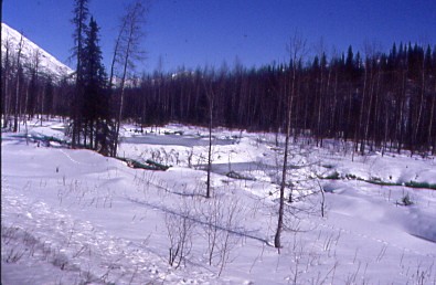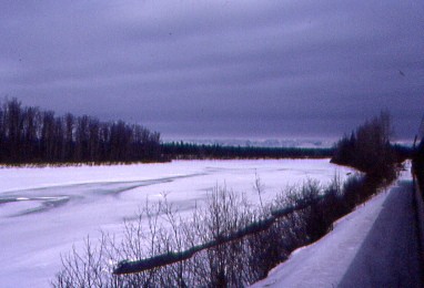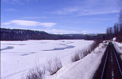 We paralleled the still-frozen Nenana River but the spring thaw was very near.