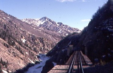 The setting for the siding at Colorado, Milepost 297.1, does look as though it could be up in the mountains of Colorado. However, it was a flag stop listed in the 1922 timetable, serving an access route to once dormant gold mines that later became active again. The valley opened to become wider as we arrived at Broad Pass with its treeless environment.