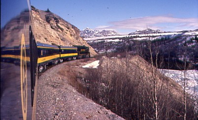 My Alaska trip happened rather suddenly. It all started with a conversation with my friend Mike Norton on San Diegan 589 one night who said that he had Reno Air miles that had to be used before the the company was merged into American Airlines, and if I wanted to use some of them I could. I responded "I have always wanted to go to Alaska!" and Mike said that they had one flight a day out of Orange County. "Sounds like a plan to me," I replied. Then Mike made a dummy reservation for me and I changed it to the wrong dates, only later to correct it with the true dates since I was not looking at the correct year's calendar. My next step was to call the Alaska Railroad for a round trip from Anchorage to Fairbanks, the only service offered in April. This was followed by calls to two hotels and with that, I had the journey to Alaska all planned.