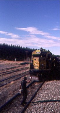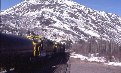 4/15/1999 Tax Day found my parents dropping me off at John Wayne Airport (Orange County) for my two-part flight to Anchorage. Leaving John Wayne, I was warned by my Learning Centre partner Pat Conner about the decrease of power that occurs over the residential area to the south of the airport that caused looks of terror on the faces of the passengers who did not know about it. Flight highlights were looking down on the California Zephyr descending Donner Pass at Yuba Gap, Williams Loop, the BNSF Highline, Mount Shasta and Crater Lake. The plane arrived in Seattle on time and I had a four hour wait for my night flight to Anchorage, where I stayed awake the entire journey and as we neared Anchorage, I could look over the top of the earth, seeing the light of day on the other side. It was incredible.