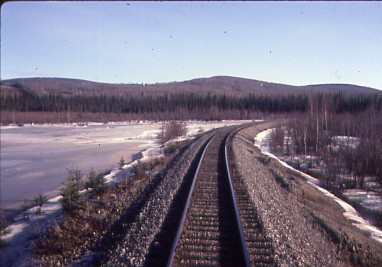 The tracks joined the valley of the Nenana River, which the Aurora followed for the next eighty-five miles to the town of Nenana on the banks of the Tanana River.