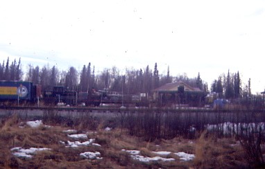 The branch line to Palmer took off at Matanuska, Milepost 151.0 before we crossed the river with the same name. The views that looked east up the river valleys were very impressive then the tracks turned to the west towards Wasilla, which is a regional center and has the world's largest fly-into mall. There are more airplanes than cars in Alaska. Wasilla is one of those palindromic names which if you reverse, becomes "All I Saw." Wasilla is also the home of the Museum of Alaska Transportation and Industry, which has a large railroad collection.