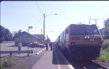 Montreal 8/13/1999 The Commuter Train DayAfter checking my bags for the day with VIA for two dollars, I ate a McDonald's breakfast before going out to spend the day riding commuter trains, all of which was new. I walked across the street from Central Station into the STCUM (Société de transport de la communauté urbaine de Montréal, or Montreal Transit) headquarters building and picked up the timetables I needed for three lines I planned to ride. Trains Magazine had reported that the line to Blainville had been closed but the truth was that due to construction and track upgrading, it stopped its inbound run at Jean Talon, close to the Parc subway station. That made me really happy as now I would be able to sample all three of commuter train routes.