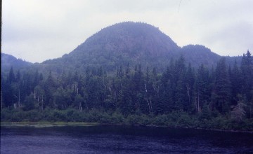 We curved away from Lac St. Jean to our next stop at Chambord where nineteen more passengers boarded then from there, our route turned south towards Montreal and made a giant "S" in its attempt to gain elevation with a lumber mill and a lake to the east. The sky had ceased raining and I was back into the forest then we stopped at our first flag stop of Lac-Bouchette where two passengers boarded. The train's route entered an area with no roads so that was the reason this train still exists, since it is an essential service as deemed by the Canadian Government and thus can not be cut, such as the Abibiti that I was riding tomorrow. After passing the Lizotte Club, the train passed Lac Kiskissink and a few miles further was outstanding beaver dam. Next on the east side of the train was Lac Long with a siding of the same name then at Milepost 119, I was very impressed with the size and different types of trees. When we reached Brook, I found that the land had been cleared on both sides of the tracks bringing a brief respite from the continuous forest and we stopped at the Summit Club where we ended our climb from Lac St. Jean and started our southerly descent. We passed Summit Lake before the train suddenly stopped at Milepost 105.7 to pick up a female passenger with no signs of where she had come from.