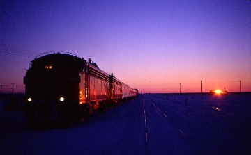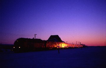 That was not the only show going on. A woman started telling a story of a Canadian that had hit a car east of Viking and after hearing this five times, I opted for my Walkman to drown her out. The meteor shower helped pass the time nicely and after a forty-minute delay, we continued into the night and the next morning, I learned that the train had hit a clump of ice on a grade crossing and it bounced its way under the train, raising the ballast before breaking an air hose in the sleeping car section. What a night! The only way it could have been better would have been a show of the Northern Lights but alas, no performance occurred.