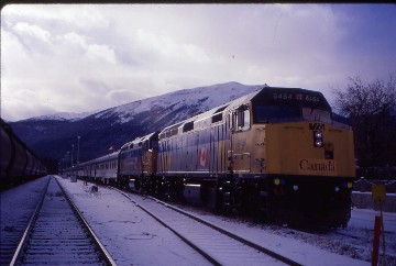 At Blue River, we again waited on time before travelling the beautiful Canadian National's Albreda Subdivision to Jasper, Alberta. I took many pictures from the rear of the dome for the opposite views of my westbound August trip. The winter landscape was just breath-taking and if Mount Robson had been clear, it would have been perfect, but its top was hidden. Still, some mountain is better than no mountain. Crossing Yellowhead Pass, other than the snow, the only difference from August was that Moose Lake did not have its turquoise color, instead being a dark black as the sun tried to break through and did not succeed until we arrived at Jasper, thirty minutes early.