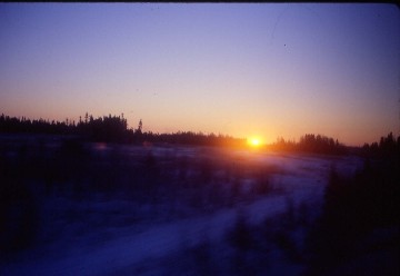 12/15/1999 I awoke to a long pre-sunrise morning and changed into my winter clothes then purchased a tea to go along with the cookies I had bought in Jasper and enjoyed both as I waited for the sun to rise, which it did as we pulled into The Pas.