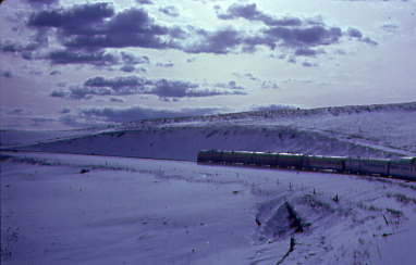 We followed the train as it climbed towards the 10,020 foot high Summit Tunnel, the highest railroad crossing in North America on 12/19/1983.