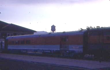 6/21/1982 -- Denver and Rio Grande Western coach 1121 "Silver Pine", nee Denver and Rio Grande Western 16 sleeper 1121 "Silver Pine", built by Budd Company in 1948. It was a sleeping car from 1948 to 1964 then converted to a coach from 1964 to 1983. It was sold to Dirk Lenthe of Fargo, North Dakota and then to Transcisco Industries, which had taken over the Texas Southern Shops. In 1992, the "Silver Pine" was prepared and made ready for a freight move to the West Coast to be used in the Carl Reiner film "Fatal Instinct". It was the star of the entire railroad footage in the movie, with the coach seats removed for a set and the seats all received new Art Deco zippered coverings. The set also used Art Deco carpeting, which was returned with the car along with the new upholstery. The car performed flawlessly in freight service to and from the West Coast. It is currently on the Austin Steam Train in Cedar Park, Texas.