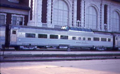 6/21/1982 -- Denver and Rio Grande Western dome-coach 1108 Silver Pony, built by Buddd Companyy in 1948. It was acquired by Amtrak in 1983, but the number 9448 was not applied. It then became Alaska Railroad 7002 (again, the number was not applied), then ARR 7033 until 1986 when it was sold to Denver Railcar 7033 (PPCX 800447) and leased to Wyoming-Colorado Railroad and Texas Southern. It was sold at auction in May 2004 to Grand Canyon Railway but derailed in transport and was stored at Williams until 2011, when it was acquired by the Illinois Railway Museum.