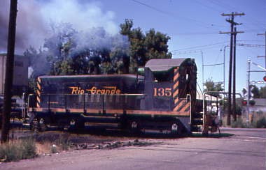 August 1980 -- In Salt Lake City was Denver and Rio Grande Western SW1200 135, built by Electro-Motive Division in 1965 and retired in 1995. It was sold to OmniTRAX in February 1995 then to Diesel Supply Company in Hudson, Wisconsin before becoming Northland Farm Co-op Elevator 135 in Rake, Iowa.
