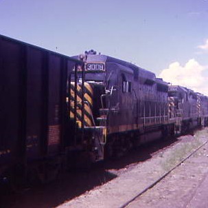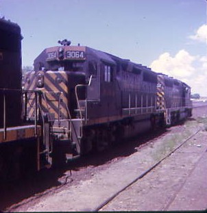 August 1972 -- At Walsenburg, Colorado was Denver and Rio Grande Western GP40-2 3108, built by Electro-Motive Division in 1972 and retired in 1979 after being wrecked near Pando on Tennessee Pass. It was sold to National Railway Equipment and acquired by American European Express in 1992 and numbered 2, then became NREX 2 in 1994, Kansas City Southern 4764 in 2004 and is currently Kansas City Southern 2899; Denver and Rio Grande Western GP40 3064, built by Electro-Motive Division in 1966 and retired in 1998 and moved to VMV Enterprises in November 1998. It was rebuilt by GATX Locomotive Group as GP38-2 2691 in 2013; and and Denver and Rio Grande Western GP30 3008, built by Electro-MotiveDivision in 1962, retired in 1997 and sold to National Railway Equipment.